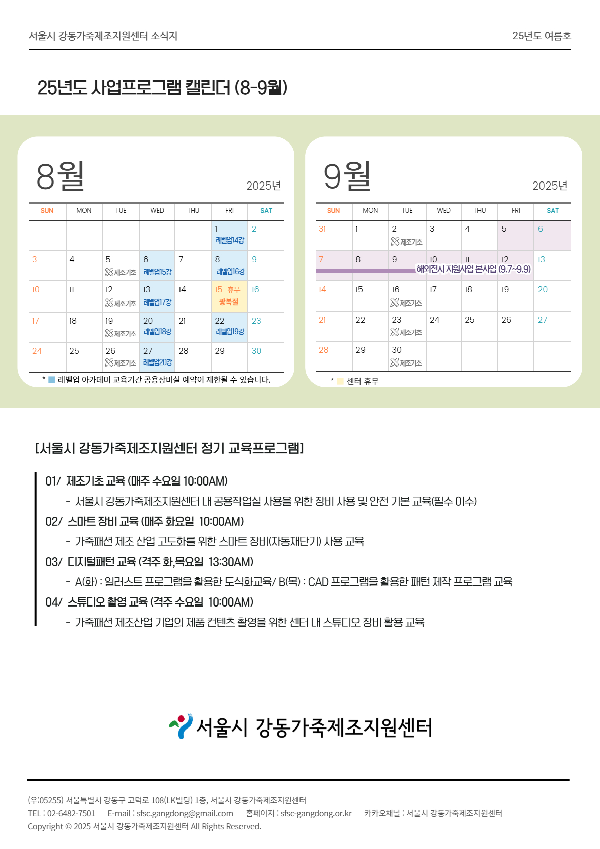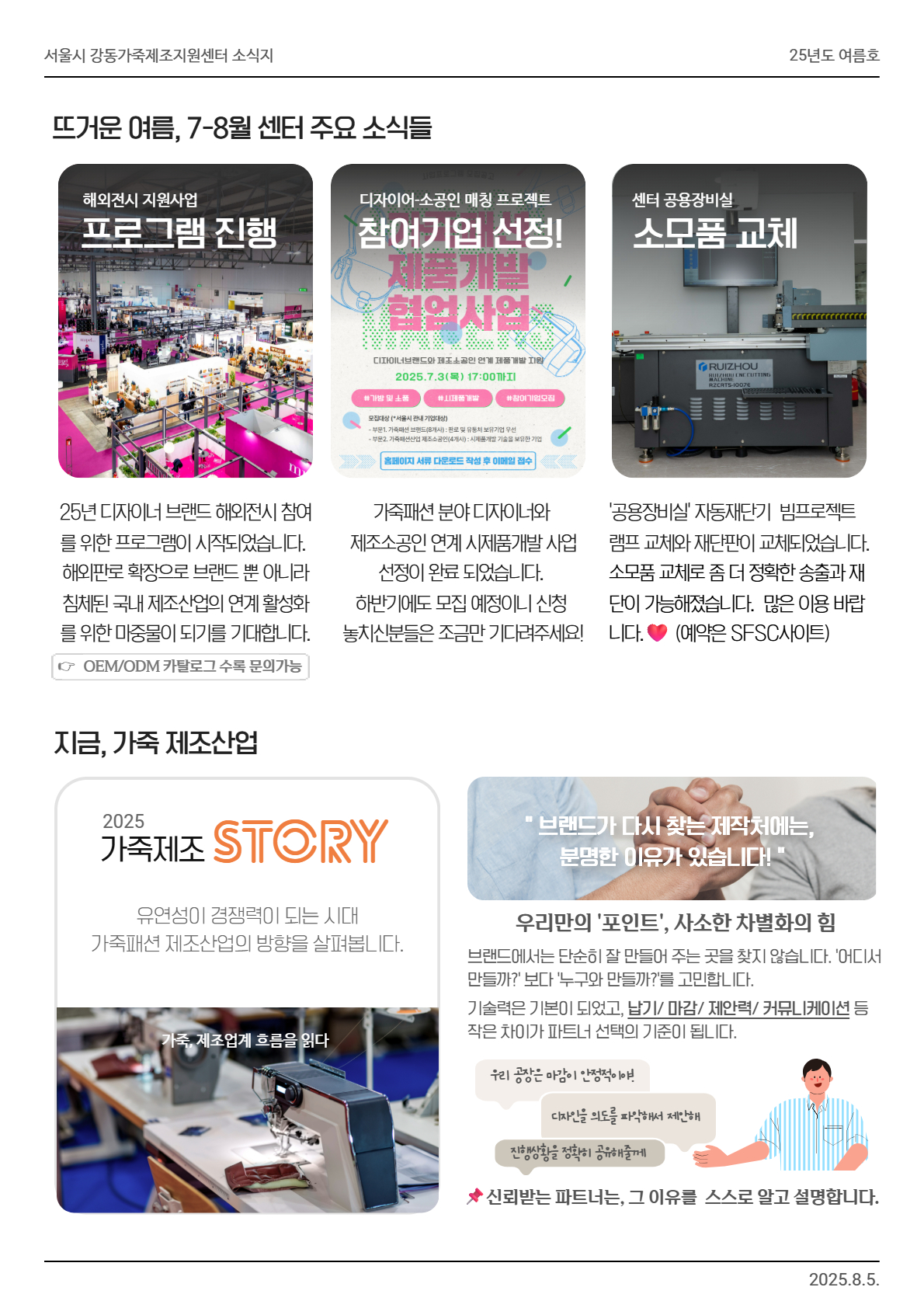 서울시 강동가죽제조지원센터 2025년 7~8월 소식지